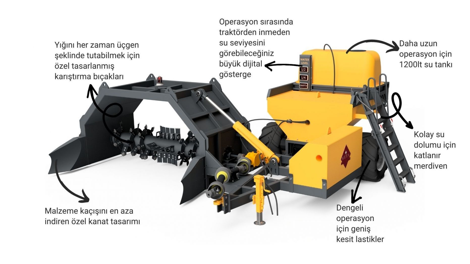 Geniş kesitli tekerlekler | 8m/dk çalışma hızı | 540 d/dk PTO hızı |
